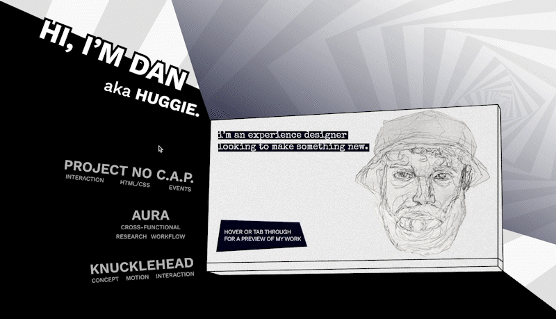 As I continue to reflect on the design of this site, improve on it, and add more content, I aim to truly nail this approach in a way that communicates the concept, but does not detract from the experience of learning about me and my work. That is the priority, above just making something cool.