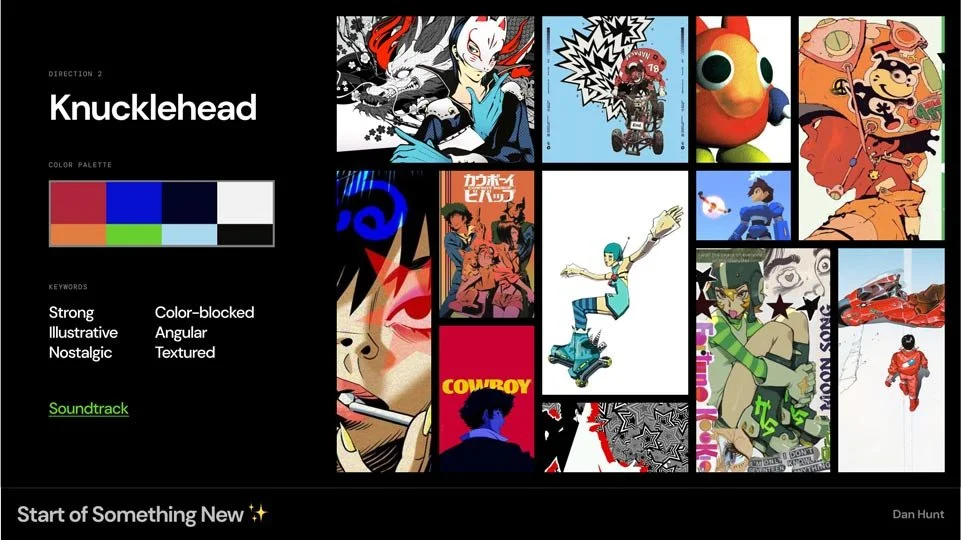 While I felt that the first direction might be more “true to me” and easier to implement on a portfolio site, I was feeling really drawn to the second direction. It had an exciting energy to it that I wanted to explore.