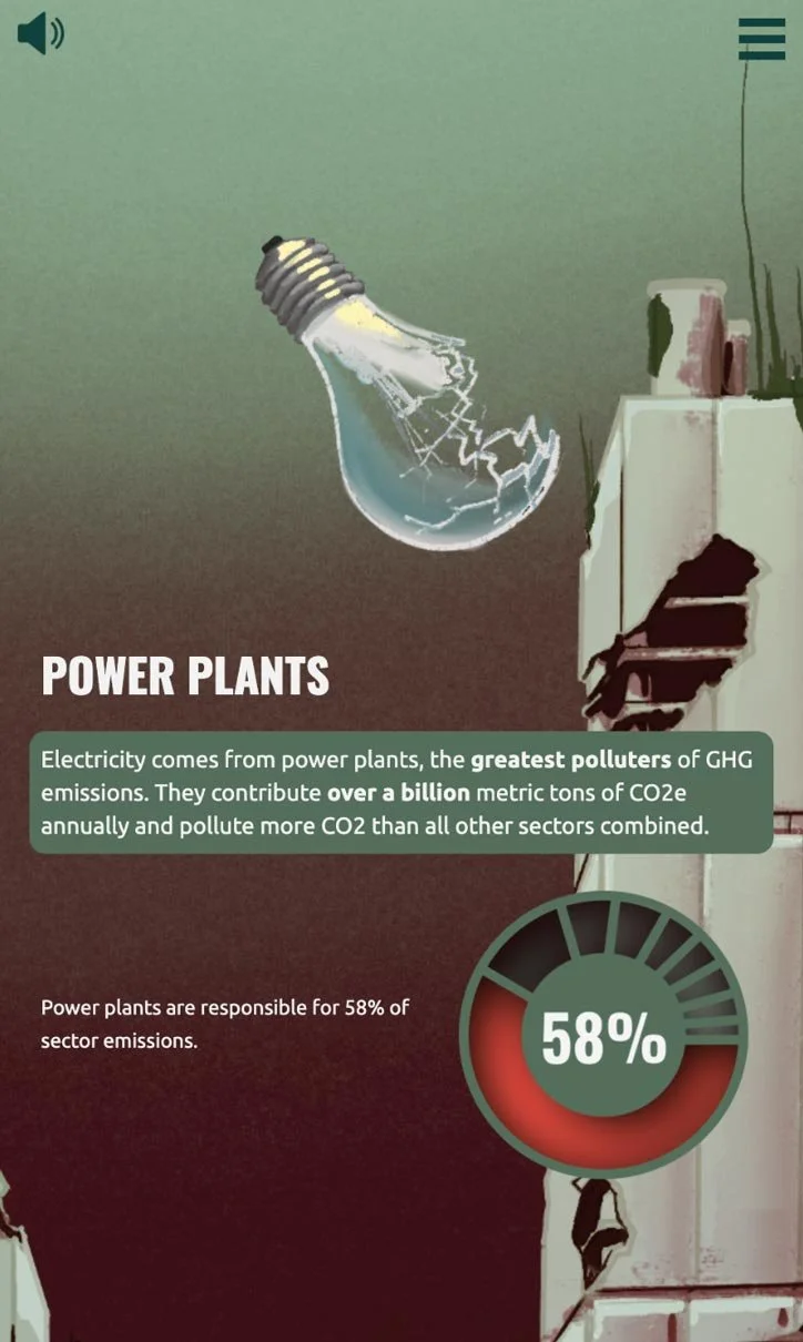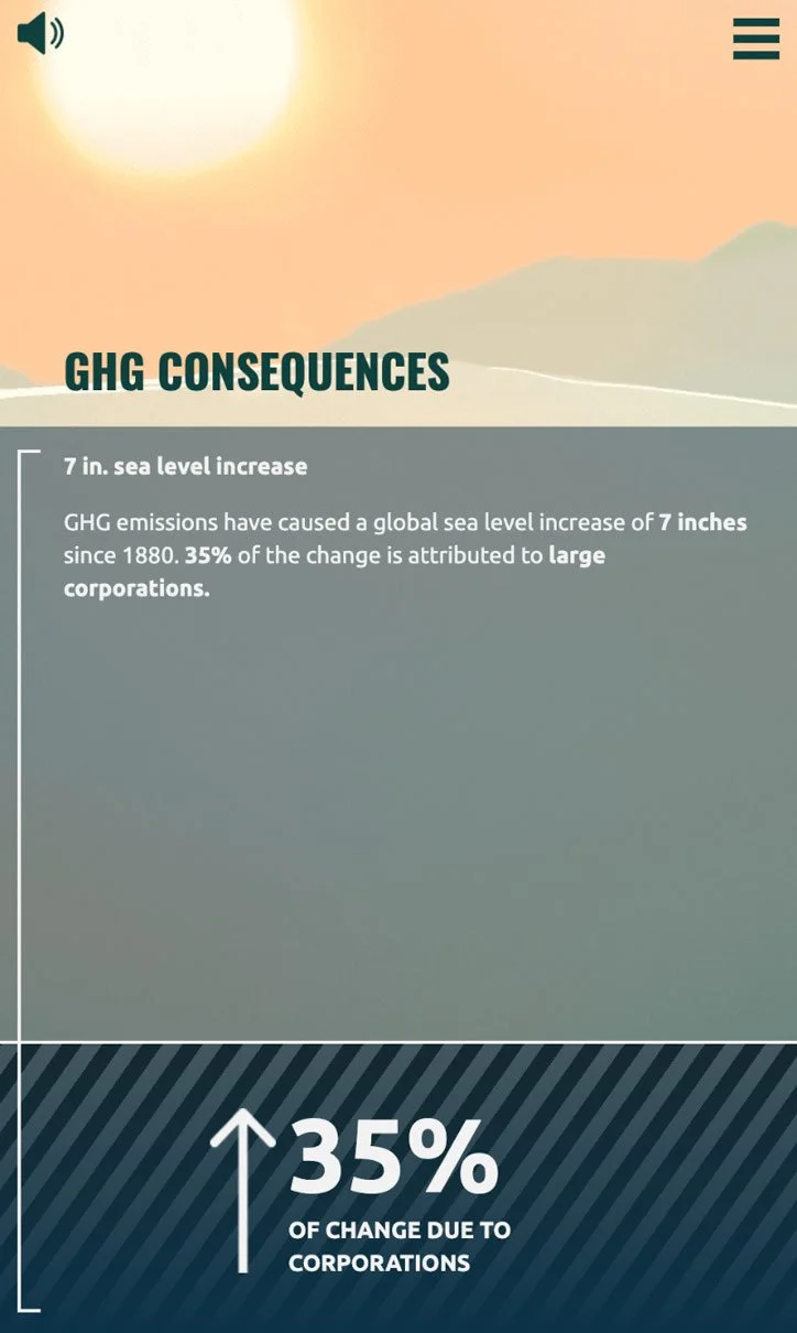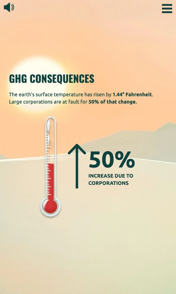 Build an interactive infographic that educates consumers on the industries contributing the most to climate change and what they can do as individuals to hold corporations accountable.