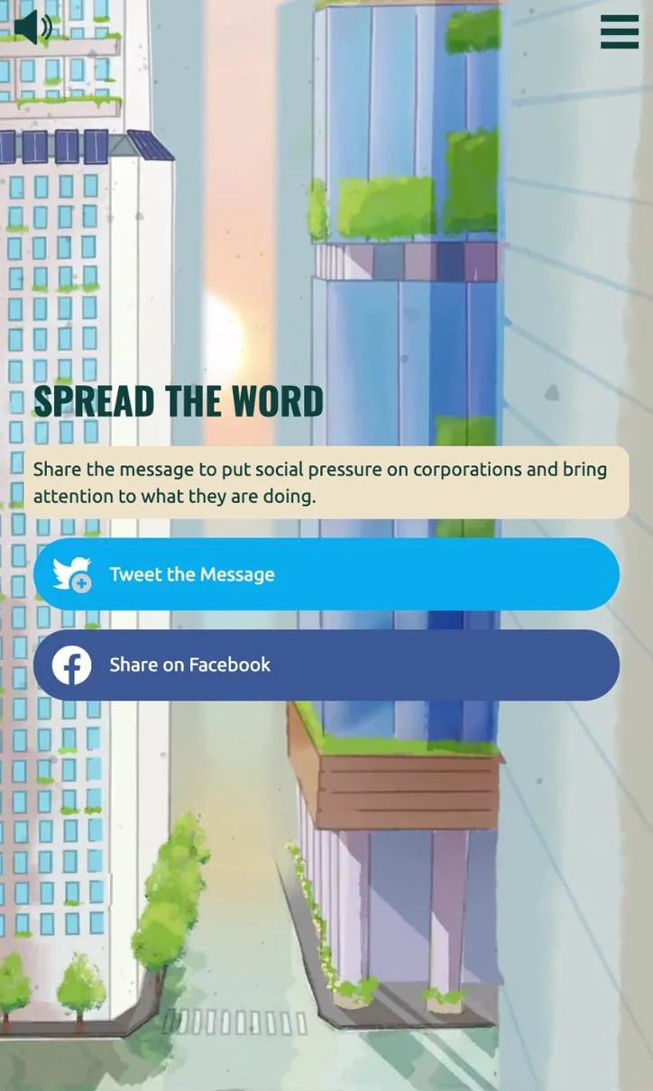 Motivate users to get involved and advocate for a better future, supplying them with information on how they can go about making that change.